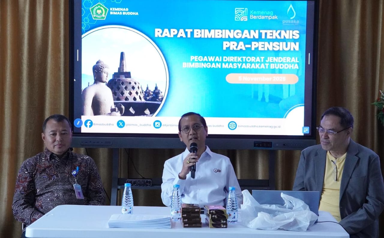 Jakarta (Bimas Buddha) ----- Dalam rangka pelaksanaan manajemen kepegawaian, Direktorat Jenderal Bimbingan Masyarakat Buddha menyelenggarakan Rapat Bimbingan Teknis (Bimtek) Pra-Pensiun bagi pegawai Ditjen Bimas Buddha di Lantai 16 Gedung Kementerian Agama, Jakarta pada Rabu (5/11/2025).