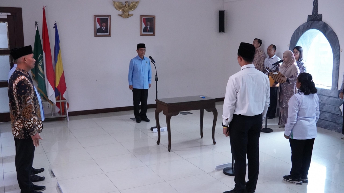 Jakarta (Bimas Buddha) — Direktur Jenderal Bimbingan Masyarakat Buddha, Supriyadi, melantik dan mengambil sumpah jabatan fungsional Analis Sumber Daya Manusia Aparatur Ahli Pertama, Slamet Purnomo, serta Perancang Peraturan Perundang-Undangan Ahli Muda, Eta Setyowati. Acara pelantikan berlangsung khidmat di Lantai 16 Gedung Kementerian Agama, Jakarta, pada Kamis (18/12/2025).